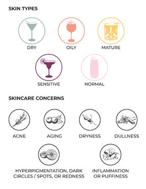 To bring the brand to life, the owner was able to select a new color palette from 11 cocktail-inspired options (still with the core pink) and the branding direction was infused with retro, but clean, detailing. 26 product images were updated from plain white backdrops to deco color-block backgrounds, and a cocktail-based iconography system was created to tag skincare types and concerns for each product. This new imagery served as a structural basis for the website, which could now reflect the brand's playful personality.