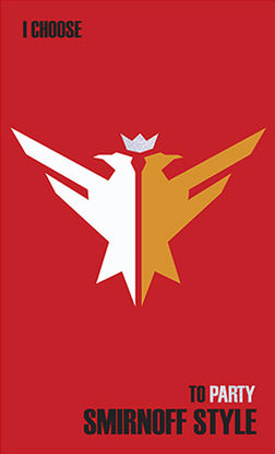 This design is intended as a packaging box for a bottle of holiday-themed Smirnov vodka. Elements such as glitter, a gingerbread man wearing a party hat, and mistletoe were incorporated to create an upbeat, holiday feel. Many Smirnov campaigns feature the slogan “I choose” with varying endings, so this campaign contains the slogan “I choose to party Smirnov style”.